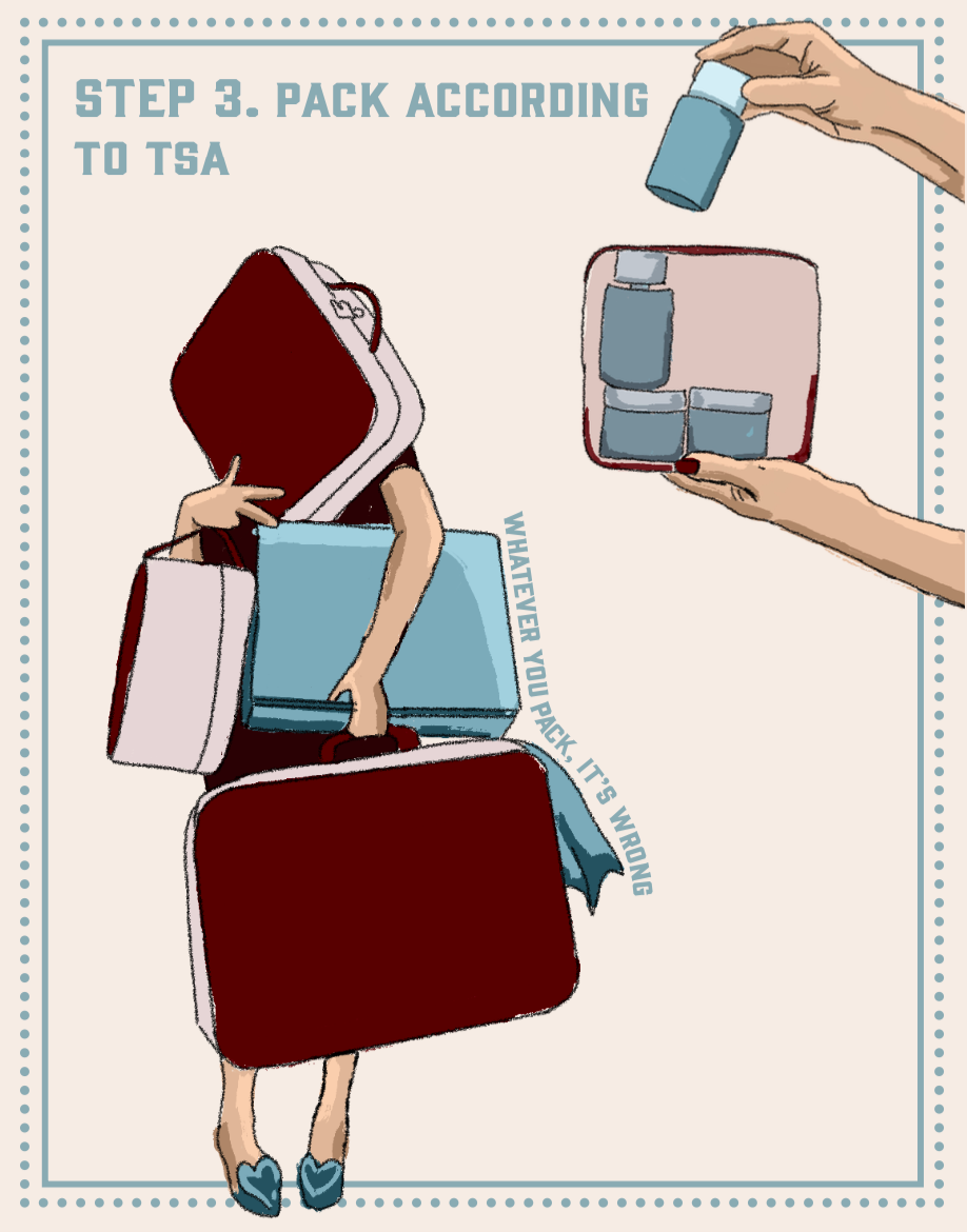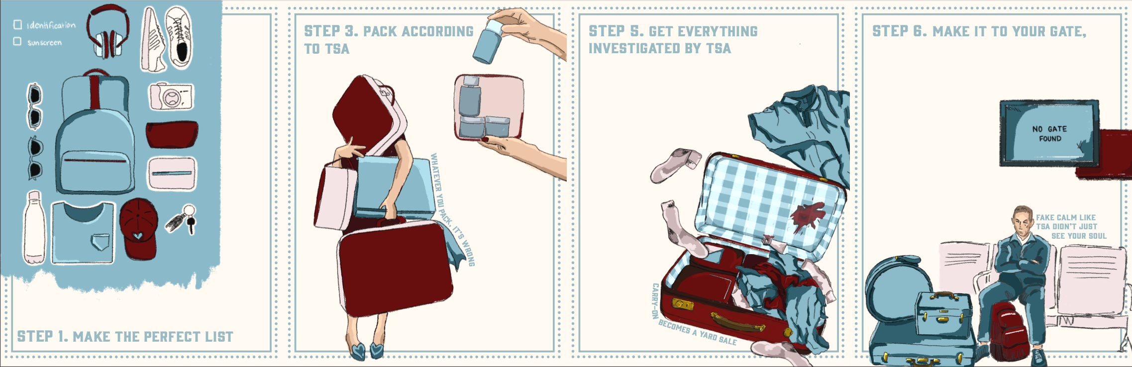 This animation illustrates Step 5, “Get Everything Investigated by TSA,” using humor and relatable visual storytelling. A suitcase is unzipped and unpacked to capture the familiar chaos and vulnerability of a TSA inspection, emphasizing the absurdity of having personal items exposed despite careful packing. Through playful exaggeration and dynamic pacing, the animation reinforces the inevitability of the process while adding a lighthearted, engaging moment to the overall brochure.
